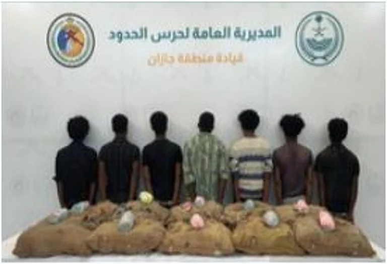 قبضت الدوريات البرية لحرس الحدود في قطاع الدائر بمنطقة جازان على (7) مخالفين لنظام أمن الحدود من الجنسية الإثيوبية، لتهريبهم (200) كيلوجرامٍ من نبات القات المخدر، وجرى استكمال الإجراءات النظامية الأولية بحقهم، وتسليمهم والمضبوطات لجهة الاختصاص.