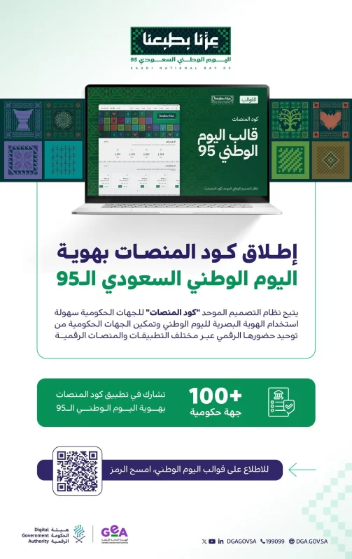 وأشارت هيئة الحكومة الرقمية إلى مشاركة أكثر من 100 جهة حكومية في تطبيق “كود المنصات” بهوية اليوم الوطني، في خطوة تؤكد تكامل الجهود بين مختلف القطاعات الحكومية لتعزيز حضور الهوية الوطنية رقميًا، وتوظيف التقنيات الحديثة لخدمة الفعاليات الوطنية وتوحيد رسائلها.