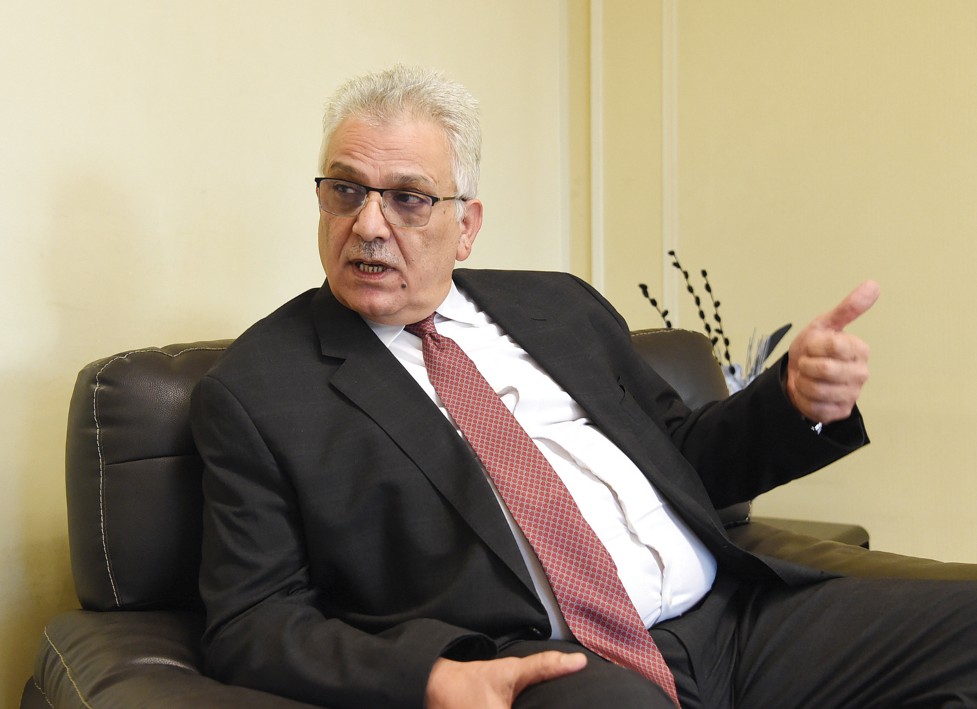 السفير مازن غنيم متحدثاً للزميل مفضي الخمساني (عدسة: بندر بخش)