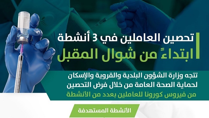 حددت وزارة الشؤون البلدية والقروية والإسكان، الأول من شوال المقبل موعدا لاشتراط تحصين العاملين في 3 أنشطة بلدية.