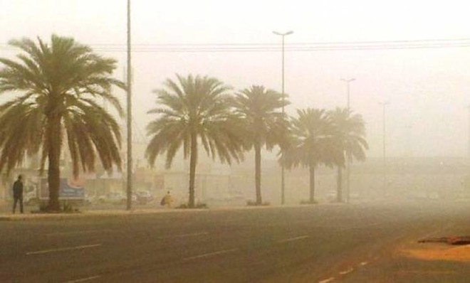 توقّع المركز الوطني للأرصاد في تقريره عن حالة الطقس اليوم -بمشيئة الله تعالى- استمرار تأثير العوالق الترابية التي تحد من مدى الرؤية الأفقية على أجزاء من مناطق جازان، وعسير، والباحة، ومكة المكرمة، تمتد إلى أجزاء من منطقة المدينة المنورة، في حين توالي درجات الحرارة العظمى ارتفاعها على أجزاء من المنطقة الشرقية.