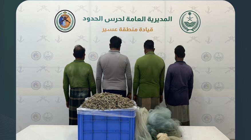 ضبطت الدوريات الساحلية لحرس الحدود في القحمة بمنطقة عسير (4) مقيمين من الجنسية البنجلاديشية مخالفين للائحة الأمن والسلامة لمزاولي الأنشطة البحرية في المناطق البحرية للمملكة العربية السعودية، وذلك لممارستهم الصيد دون تصريح، وبحوزتهم أسماك مصيدة، واُتُّخِذَت الإجراءات النظامية بحقهم بالتنسيق مع الجهات المختصة.فرص عمل في السعودية